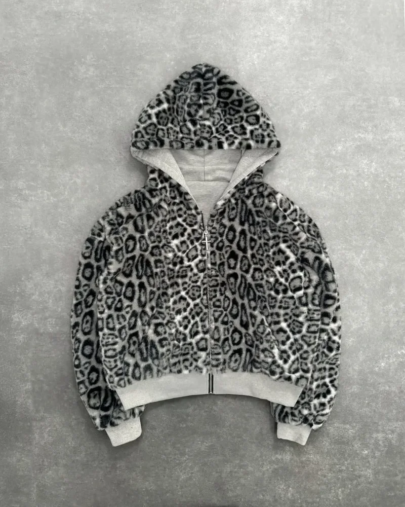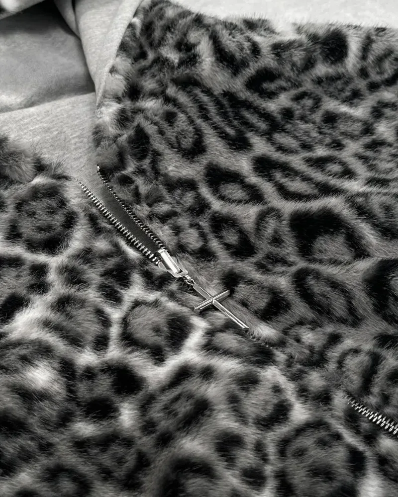 Bold Leopard Print: The monochrome leopard print lining introduces a fierce and edgy element, perfect for channeling Urban Streetwear or Grunge Glam aesthetics.