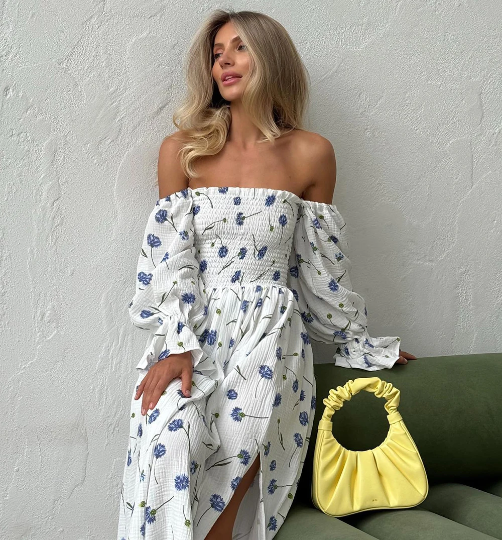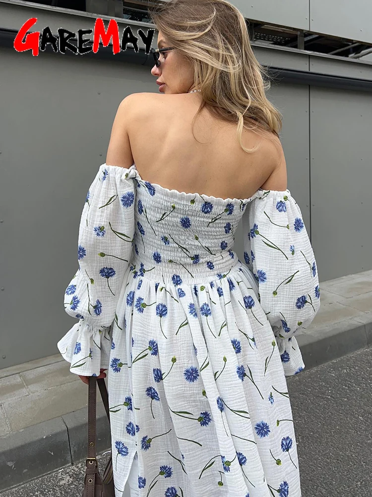 This Summer Shoulderless Cotton White Dress combines cottagecore, kawaii, and soft girl aesthetics with its elegant ruffle design and vintage floral print. The dress features side slits for a playful touch, making it both charming and comfortable. Perfect for embracing a dreamy, feminine style in warm weather.