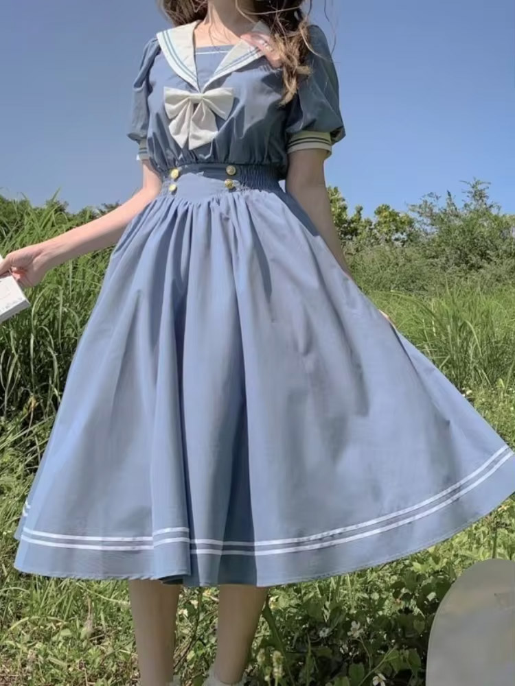 This Japanese Soft Girl Lolita Dress captures the essence of Kawaii and Harajuku style with its adorable puff sleeves, sailor collar, and charming bow detail. Perfect for those who love a cute and playful look, this dress blends traditional Lolita elements with modern soft girl aesthetics, creating an irresistibly sweet ensemble.