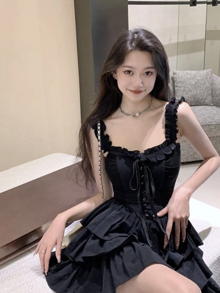 This Black Gothic Harajuku Dress is a striking blend of edgy and elegant, perfect for those who embrace alternative fashion. The dress features dramatic ruffles that add a touch of flair, while intricate lacing details enhance its gothic charm. With its dark, mysterious aesthetic, this dress embodies the essence of Harajuku style, making it an ideal choice for anyone looking to make a bold statement in gothic fashion.