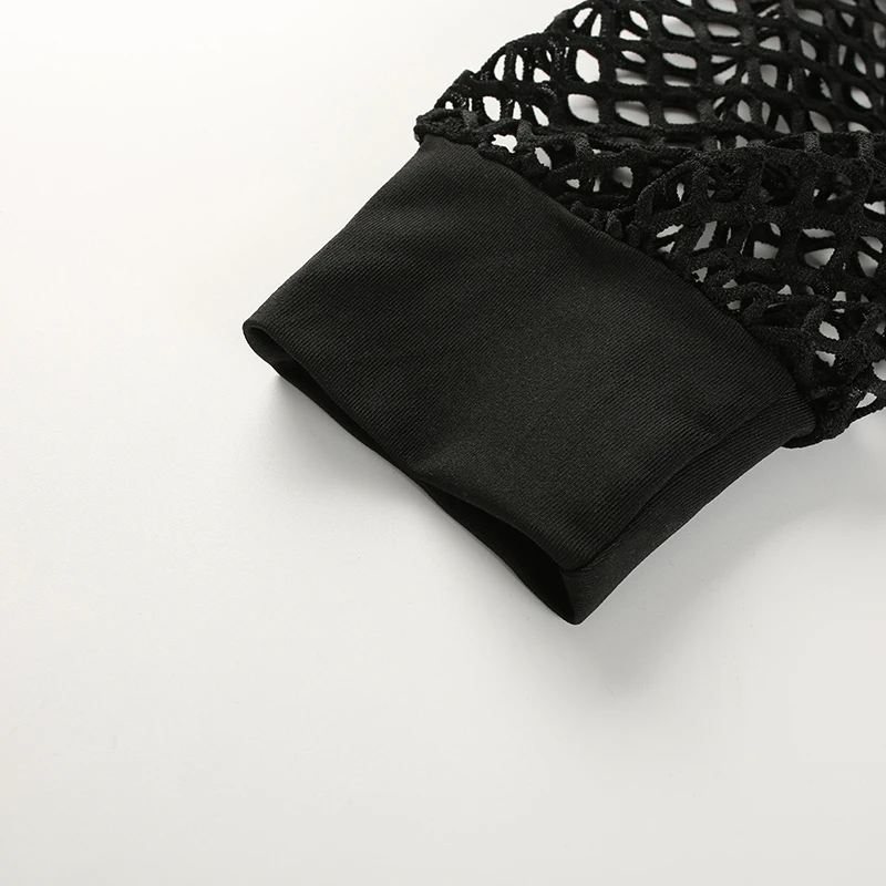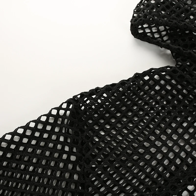 Fishnet Fabric: The fishnet fabric adds a touch of allure and sophistication, making it a statement piece.