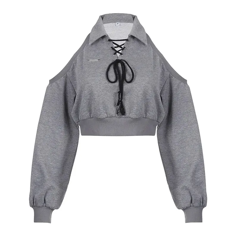 Embrace the edgy and rebellious vibes of Grunge Streetwear with this stylish Cold-Shoulder Crop Top. Perfect for those who love to blend urban coolness with a touch of ruggedness.