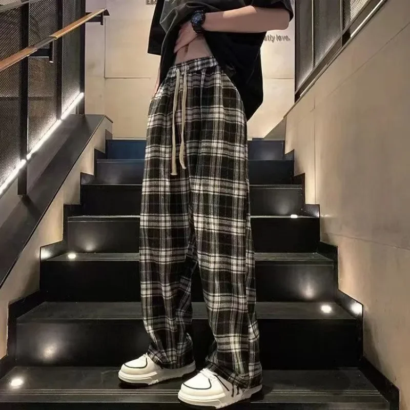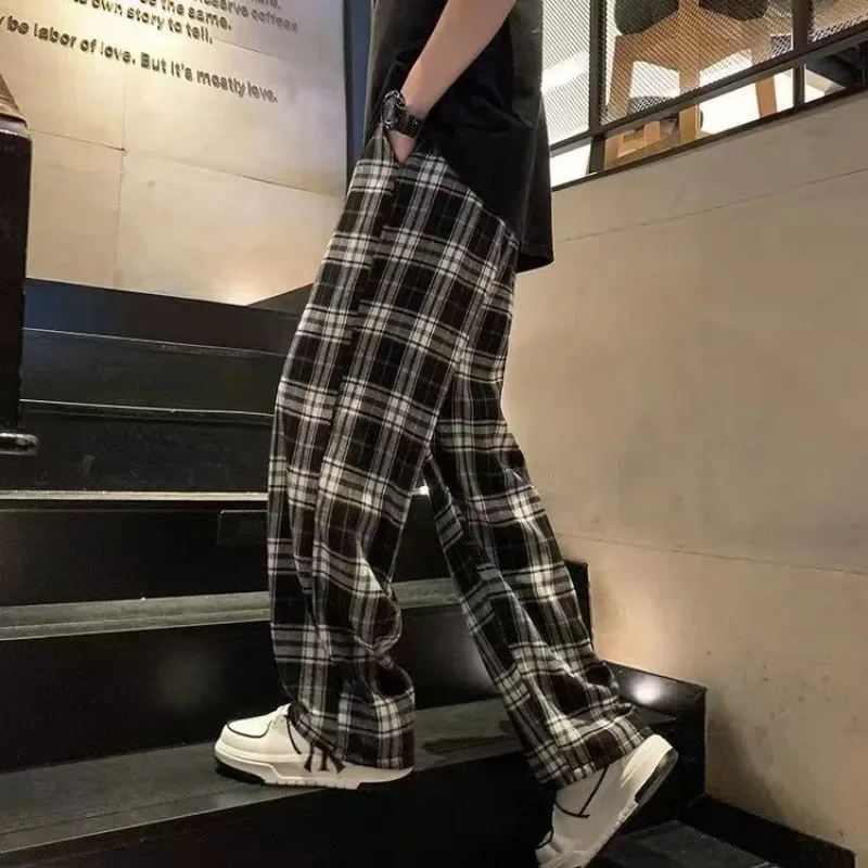 Classic Plaid Pattern: The pants feature a black, white, and gray plaid pattern, embodying the iconic Grunge aesthetic with a modern twist.