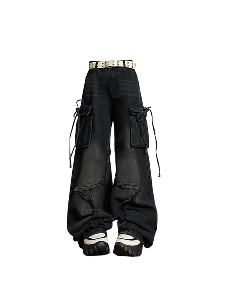Distressed Details: The distressed details with frayed edges and rips add a grungy and worn-in look, enhancing the overall Grunge & Punk aesthetic.