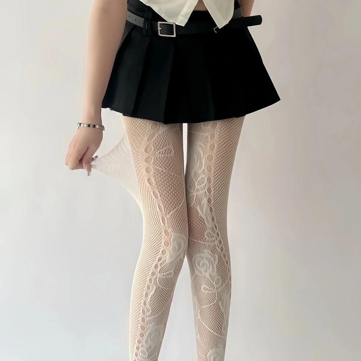 Perfect for those who love to blend the romantic with the rebellious, these stockings are inspired by Harajuku Lolita aesthetics, making them a versatile addition to both gothic and punk styles. The mesh fabric ensures breathability and comfort, while the floral design and holes create a unique, eye-catching look.