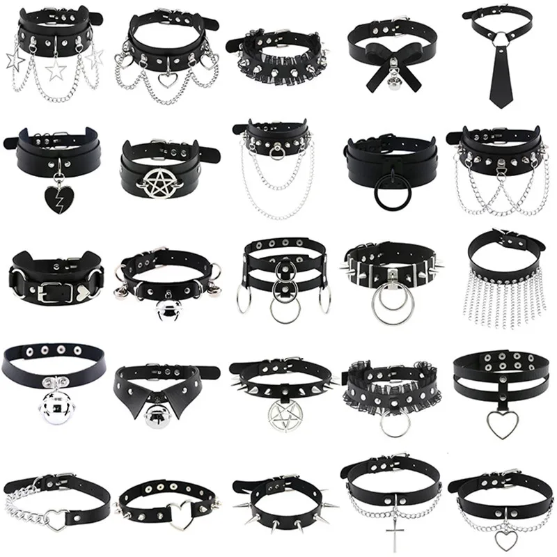 Leather Chokers with Rivets, Heart, Crosses, Spikes Decoration – Gothic Punk Rock Style