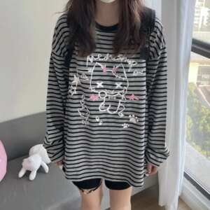 Kawaii Harajuku Striped Cat T-Shirt