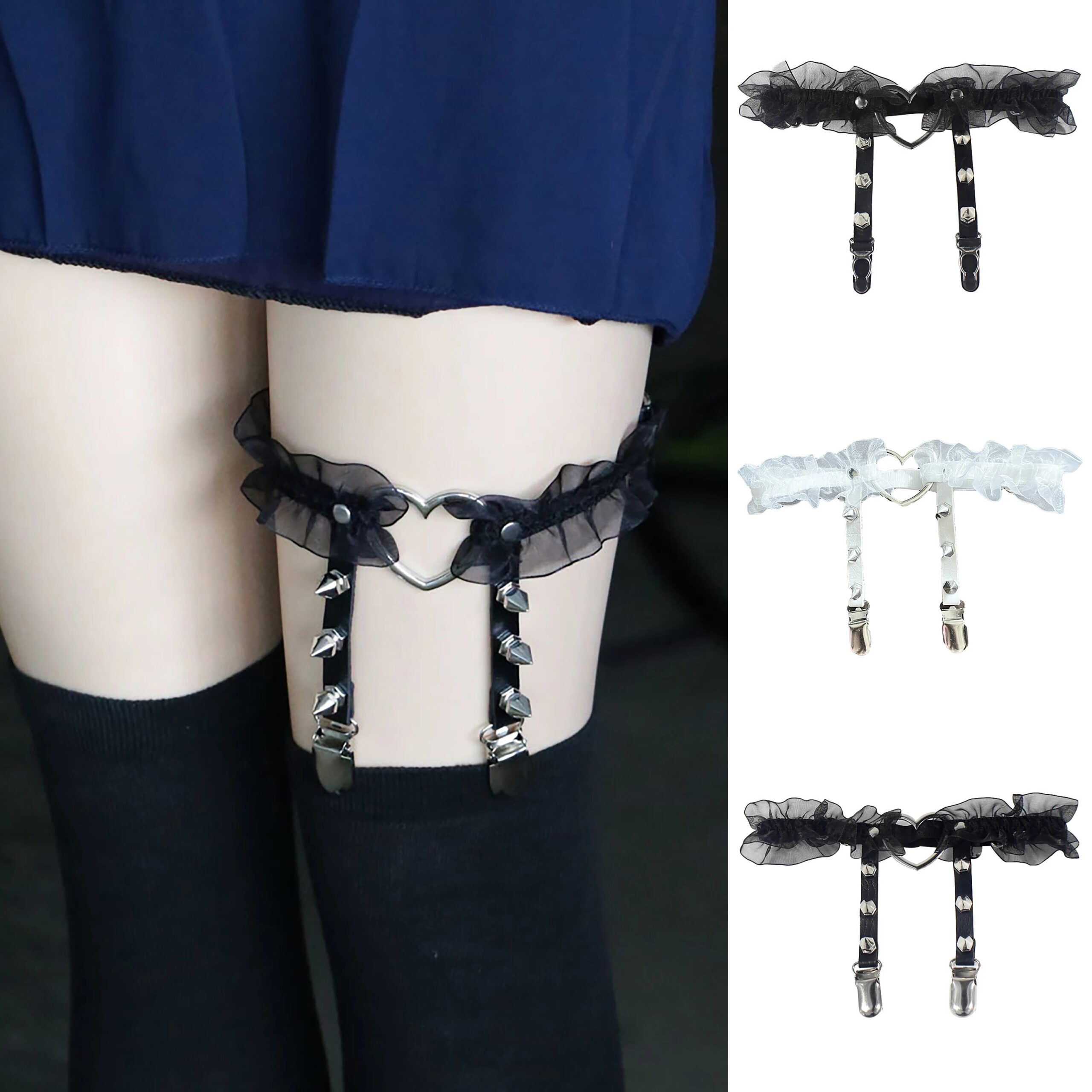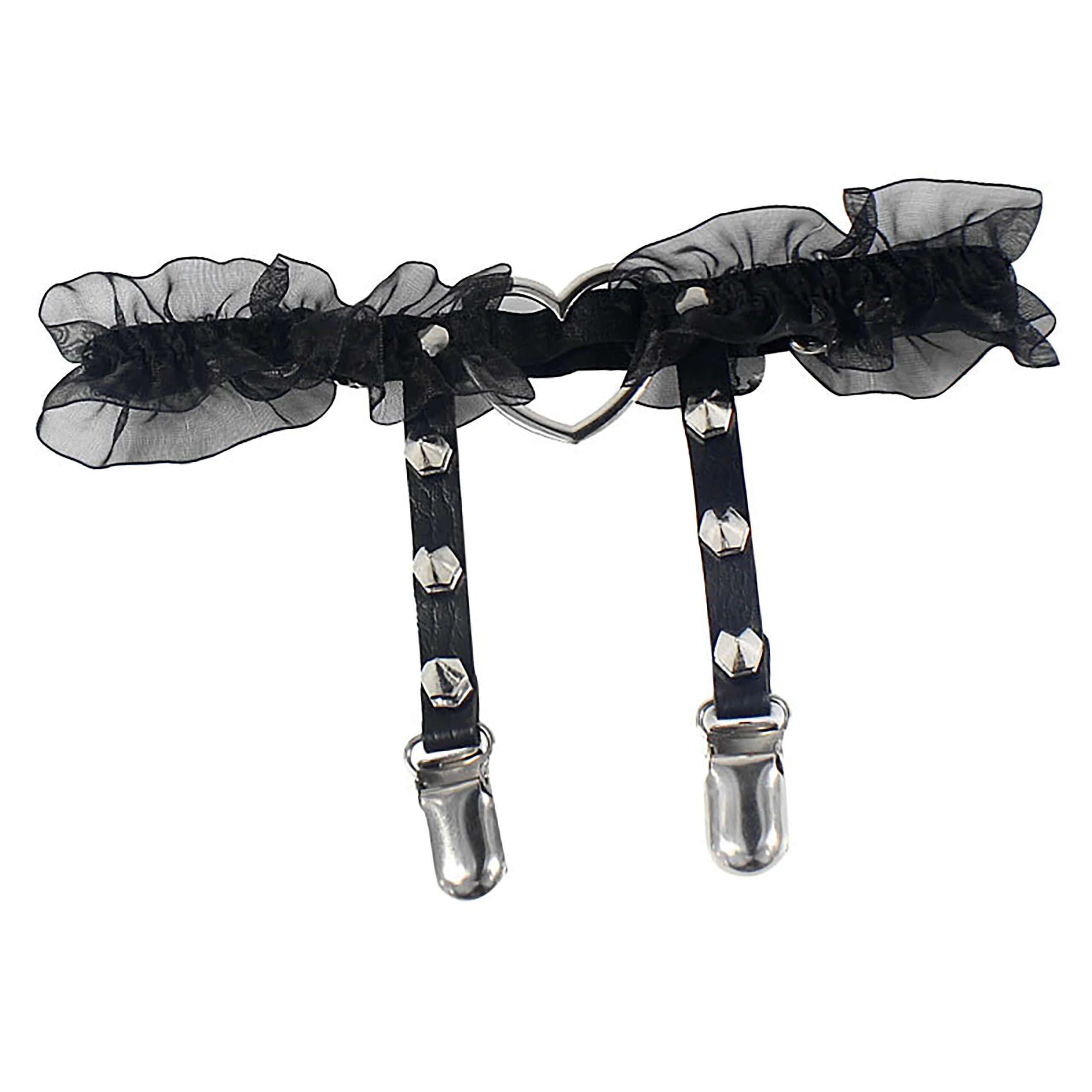 Add an edgy and stylish touch to your ensemble with this Gothic Punk Heart Garter Belt. Perfect for those who love to blend dark aesthetics with a hint of romance, this garter belt is a statement piece that combines bold elements with a feminine touch.
