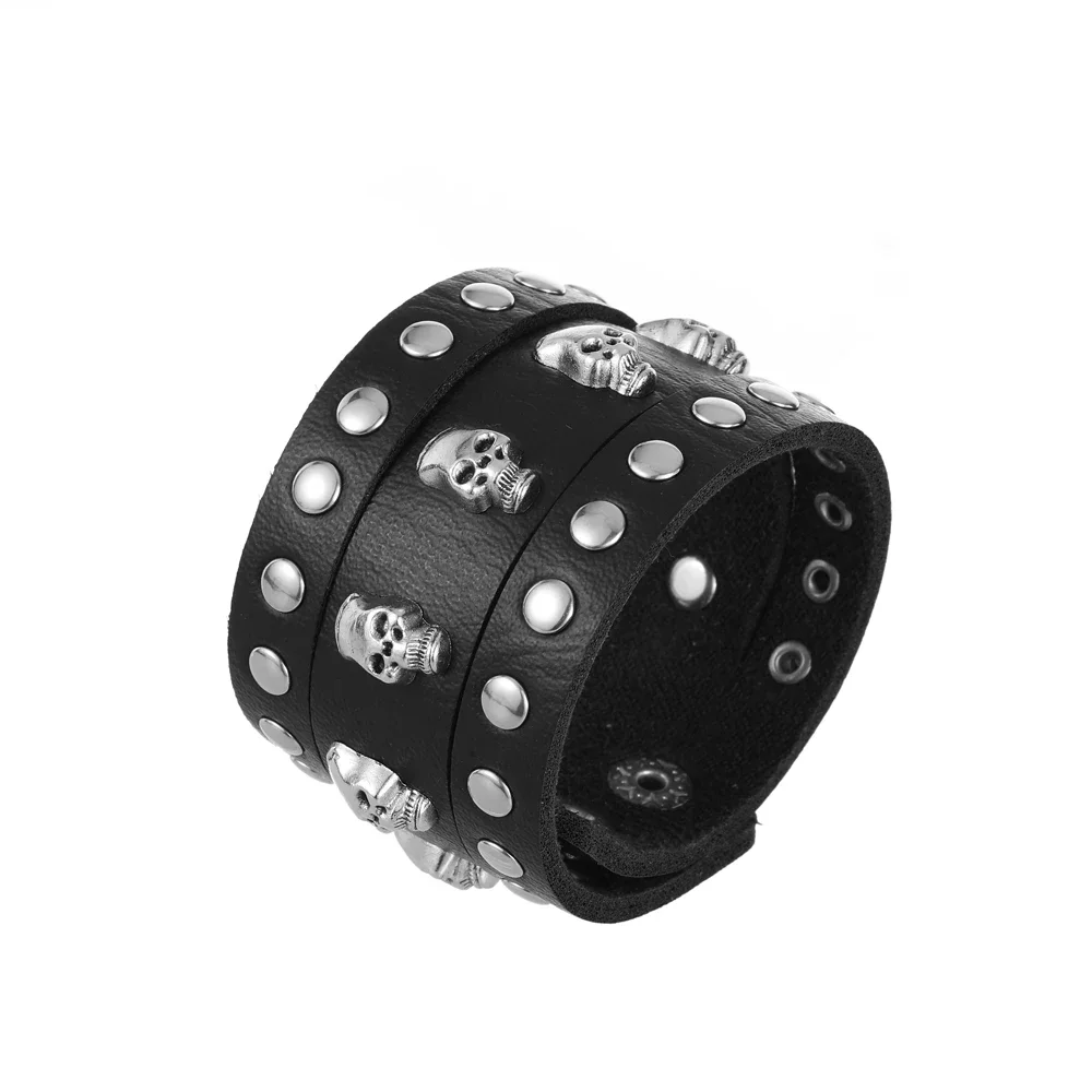 The Genuine Leather Wide Wristband with Skull and Rivet Decorations is a bold and edgy accessory that perfectly captures the punk and gothic aesthetics. Crafted from high-quality genuine leather, this wristband features a wide design that offers a striking and distinctive look. The skull and rivet decorations add a touch of rebellion and darkness, making it a standout addition to any outfit. Ideal for creating statement-making and expressive looks, this wristband can be paired with a leather jacket and ripped jeans for a full-on punk gothic look, or with a black dress and combat boots for a more dramatic ensemble. This Genuine Leather Wide Wristband with Skull and Rivet Decorations is a must-have for anyone looking to embrace the raw and edgy aesthetics of punk and gothic fashion.