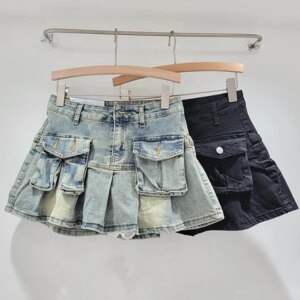 Denim Pleated Mini Skirts