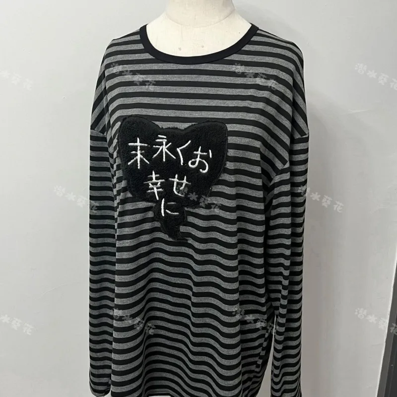 Dive into the expressive and edgy world of the Egirl aesthetic with this Oversized Striped Long-Sleeve Shirt. Perfect for those who love to blend grunge-inspired fashion with emotional and playful design elements.