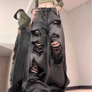 Grunge Streetwear Pinstripe Wide-Leg Pants