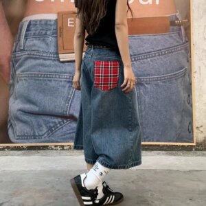 Y2K Punk Baggy Cargo Pants with Plaid Detailing