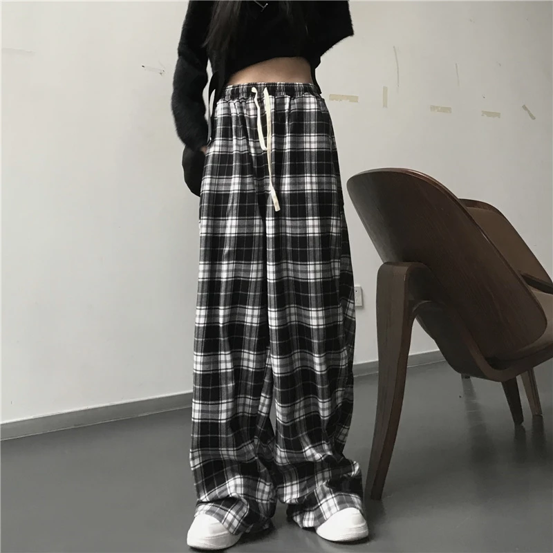 Harajuku Streetwear Plaid Wide-Leg Pants