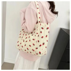 Kawaii Strawberry Print Tote Bag