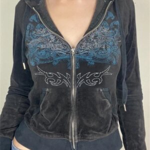 Y2K Hoodie with zipper, embroidery, grunge graphic