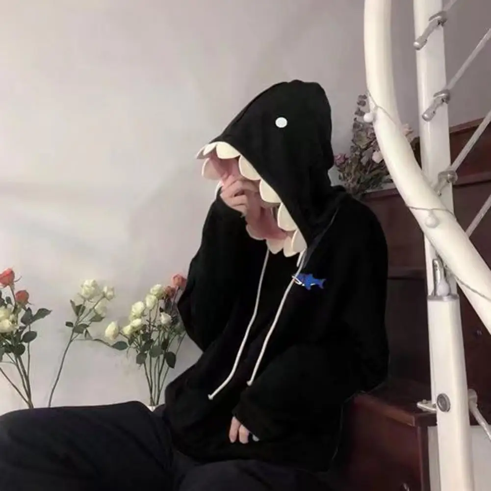 Shark Design: The hoodie features a unique shark-shaped hood with eyes and fins, adding a playful and eye-catching element.
