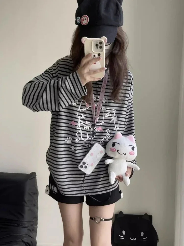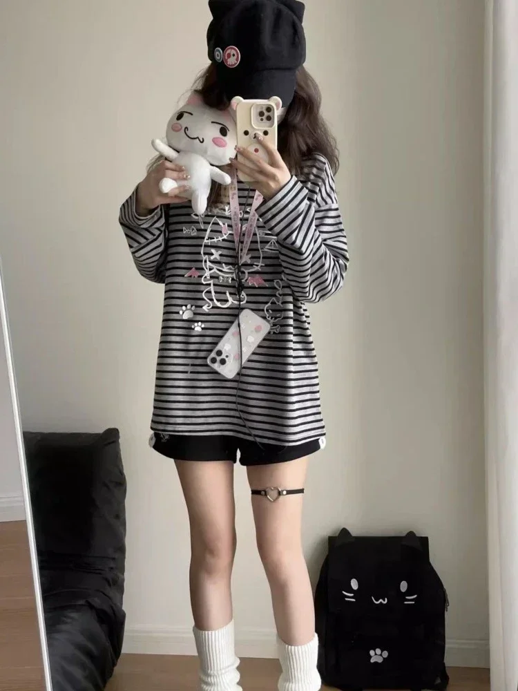 Kawaii Harajuku Striped Cat T-Shirt