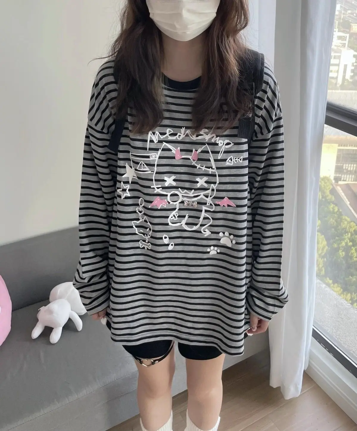 Cat Graphic: The front features a charming cat graphic with whimsical details, enhancing the kawaii aesthetic.
