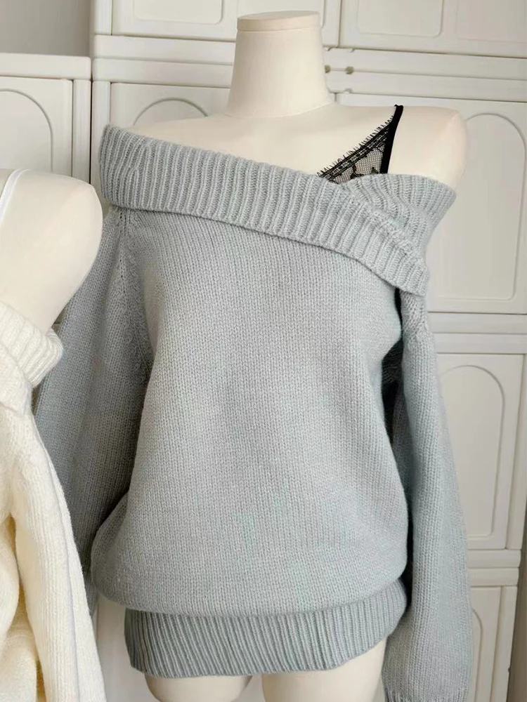 Introducing the Coquette Fake Two-Piece Knitted Sweater, a charming and playful addition to your wardrobe that perfectly captures the nostalgic allure of Y2K aesthetics. This unique sweater features a clever two-piece design that creates the illusion of layered clothing, adding a stylish and modern twist. The off-shoulder cut offers a touch of elegance and allure, while the long sleeves provide warmth and a relaxed fit. The delicate lace shoulder strap adds a feminine and whimsical touch, enhancing the overall Y2K aesthetic. Crafted from soft and cozy knitted material, this sweater offers both style and comfort. Ideal for creating charming and expressive looks, this sweater can be paired with high-waisted jeans and chunky sneakers for a casual yet stylish ensemble, or with a pleated skirt and platform shoes for a more Y2K-inspired outfit. The Coquette Fake Two-Piece Knitted Sweater is a must-have for anyone looking to embrace the playful and dynamic aesthetics of Y2K fashion.