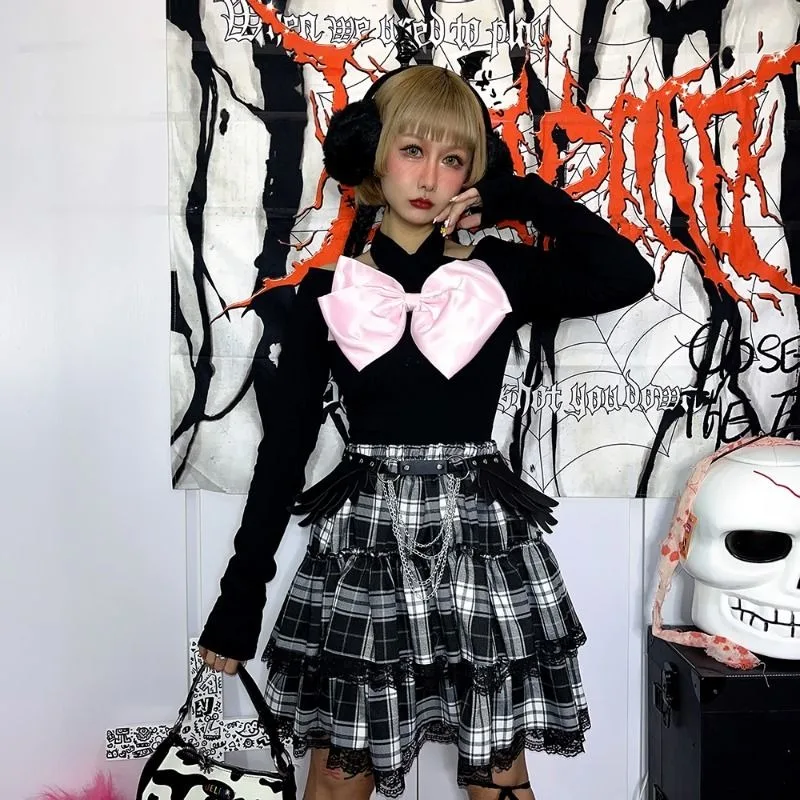 Embrace the charm of Kawaii Harajuku fashion with this Preppy Style Plaid Multi-Layered Skirt. Featuring a classic plaid pattern in a monochromatic palette, this skirt is perfect for adding a touch of playful elegance to your wardrobe.