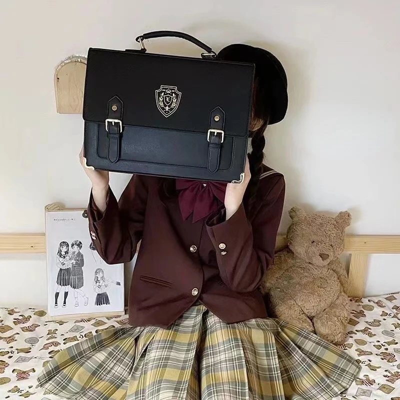 The Preppy Y2K Aesthetic College Bag with Dark Academia Aesthetics is a stylish and sophisticated accessory that perfectly blends the nostalgic charm of Y2K fashion with the intellectual allure of Dark Academia. Crafted from high-quality materials, this bag features a classic and elegant design in black and brown colors, adding a touch of sophistication and timeless appeal to any outfit. The spacious interior provides ample room for all your essentials, while the durable construction ensures longevity and practicality. Ideal for both academic and everyday use, this bag can be paired with tailored trousers and a blazer for a refined Dark Academia look, or with jeans and a sweater for a more casual yet stylish ensemble. This Preppy Y2K Aesthetic College Bag is a must-have for anyone looking to embrace the timeless and intellectual aesthetics of Dark Academia and Y2K fashion.