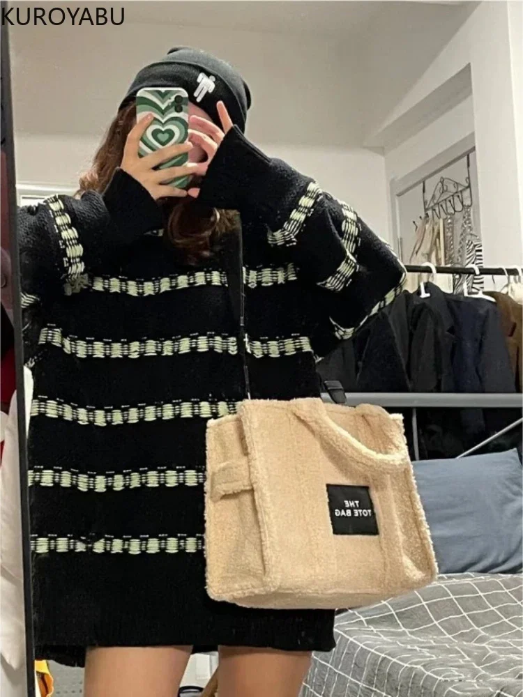 The Lamb Wool Tote Bag is a stylish and functional accessory that perfectly captures the playful and eclectic aesthetics of Harajuku fashion. Crafted from soft and luxurious lamb wool, this tote bag offers both comfort and durability. The baggy design provides ample space for all your essentials, making it ideal for travel and everyday use. The Harajuku-inspired aesthetics add a touch of whimsy and uniqueness to any outfit. Whether you’re heading out for a day of adventure or running errands, this Lamb Wool Tote Bag is a must-have for anyone looking to embrace the delightful and enchanting aesthetics of Harajuku fashion while staying organized and stylish.