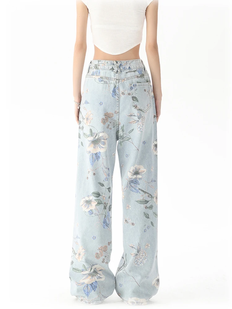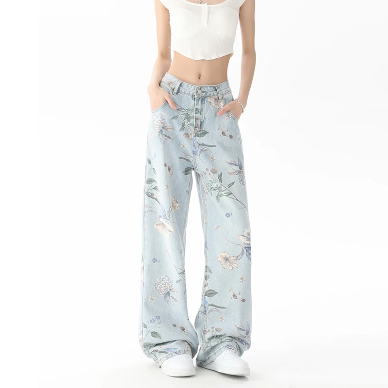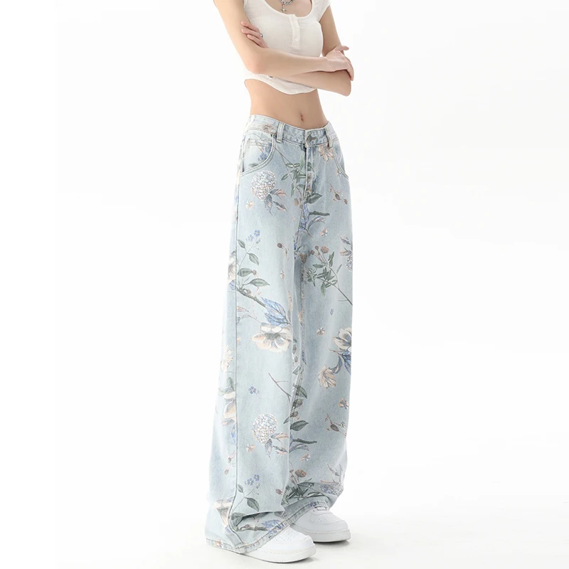 Embrace the whimsical and romantic vibes of Cottagecore with these stylish Floral Wide-Leg Jeans. Perfect for those who love to blend nature-inspired and playful elements into their style.