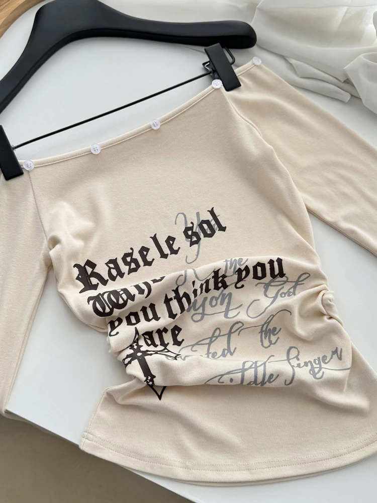 Embrace the Y2K Harajuku style with this chic and playful Coquette Slash Neck Off-Shoulder T-Shirt. Featuring a unique slash neck design that elegantly drapes off the shoulders, this top is perfect for adding a touch of feminine flair to your wardrobe.