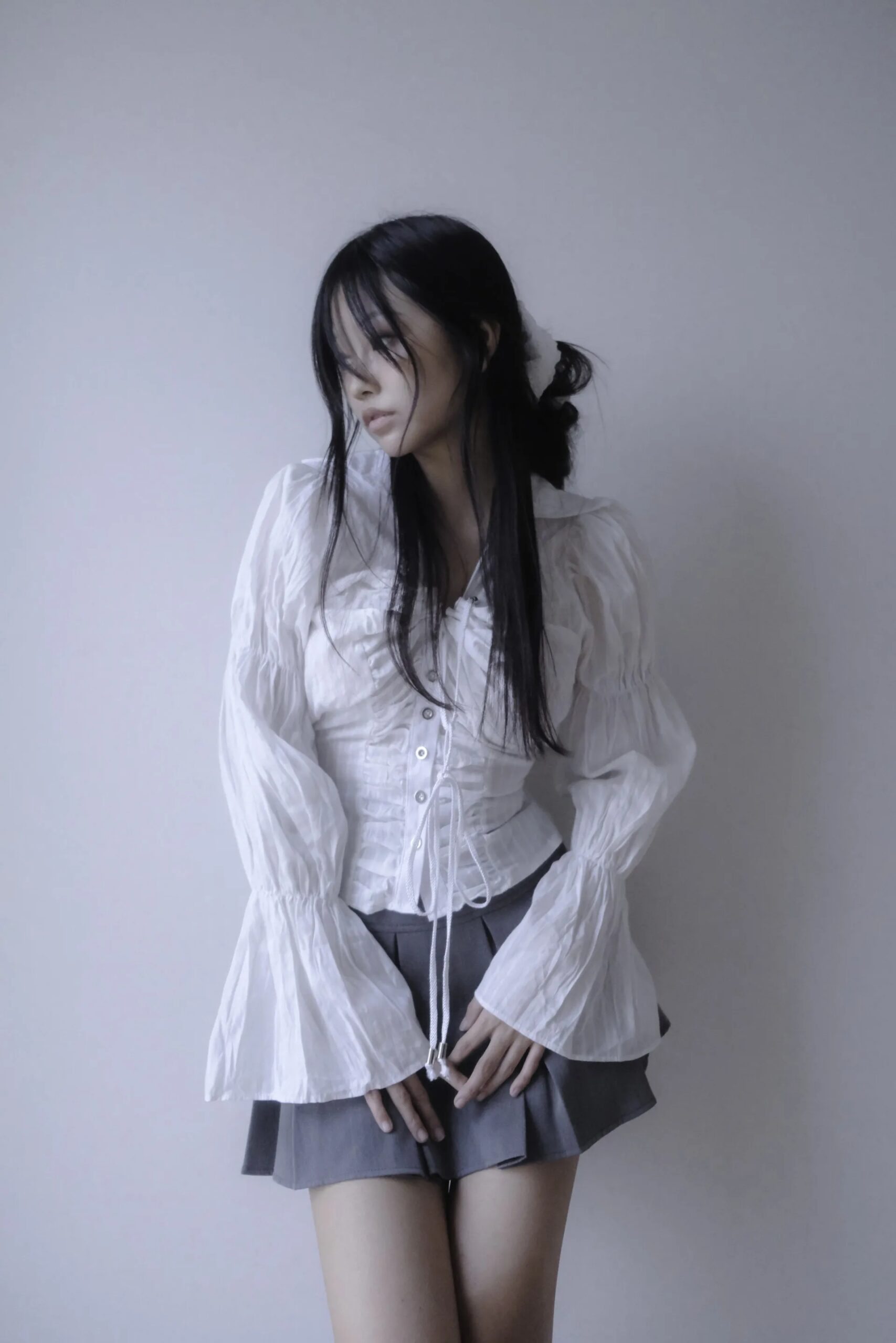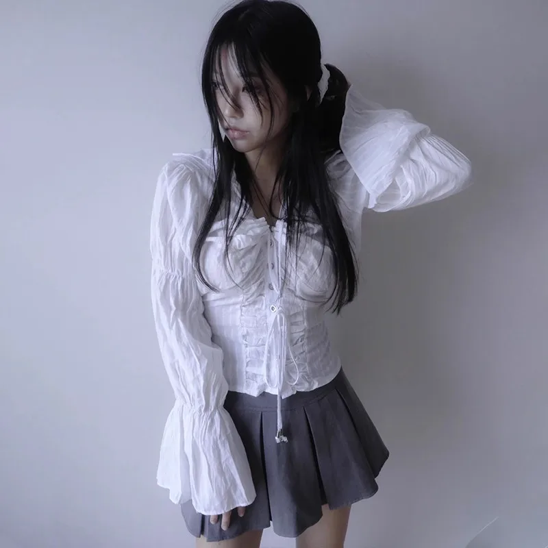 The Kawaii Aesthetics Irregular Blouses with Bandage and Flare Sleeves are a charming and stylish addition to any wardrobe, perfectly blending the playful spirit of Kawaii with the elegant and romantic aesthetics of Soft Girl, Vintage Gothic, and Coquette styles. Available in both white and black colors, these blouses feature an irregular design that adds a touch of uniqueness and whimsy to any outfit. The bandage details and flare sleeves enhance the overall look, providing a blend of cuteness and sophistication. Crafted from soft and comfortable materials, these blouses offer both style and comfort. Ideal for creating adorable and expressive looks, these blouses can be paired with a pleated skirt and ballet flats for a full-on Kawaii Soft Girl look, or with high-waisted jeans and chunky boots for a more vintage-inspired ensemble. These Kawaii Aesthetics Irregular Blouses with Bandage and Flare Sleeves are a must-have for anyone looking to embrace the delightful and enchanting aesthetics of Kawaii, Soft Girl, Vintage Gothic, and Coquette fashion.