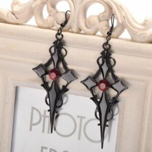 Gothic cross Necklace with red crystal