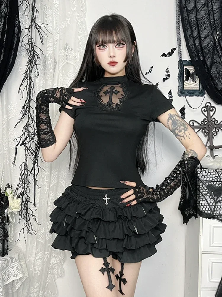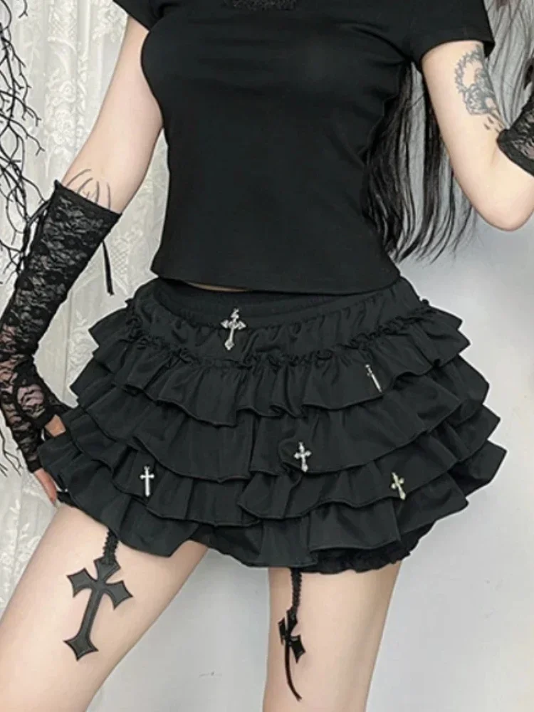 Cross Embellishments: Delicate cross details adorn the skirt, enhancing its gothic appeal and adding a touch of mystique.