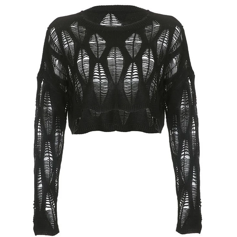 Introducing our Black Hollow Out Knitted Top – a must-have for women who love grunge, punk, and gothic styles. This loose-fitting streetwear piece features dramatic batwing sleeves and a distinctive hollow-out knit design, perfect for adding an edgy touch to your wardrobe. The black color enhances its versatile and bold appeal, making it a standout choice for those who want to express their unique sense of style. Embrace your inner rebel with this effortlessly cool and fashion-forward top.