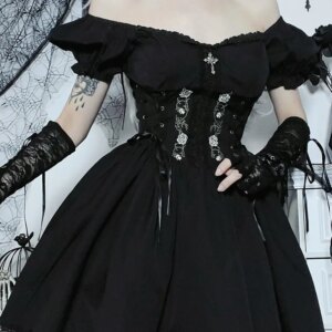 Plaid Fabric Insert: The red and black plaid fabric insert at the waist adds a striking contrast and a nod to the grunge-inspired elements of Punk fashion.