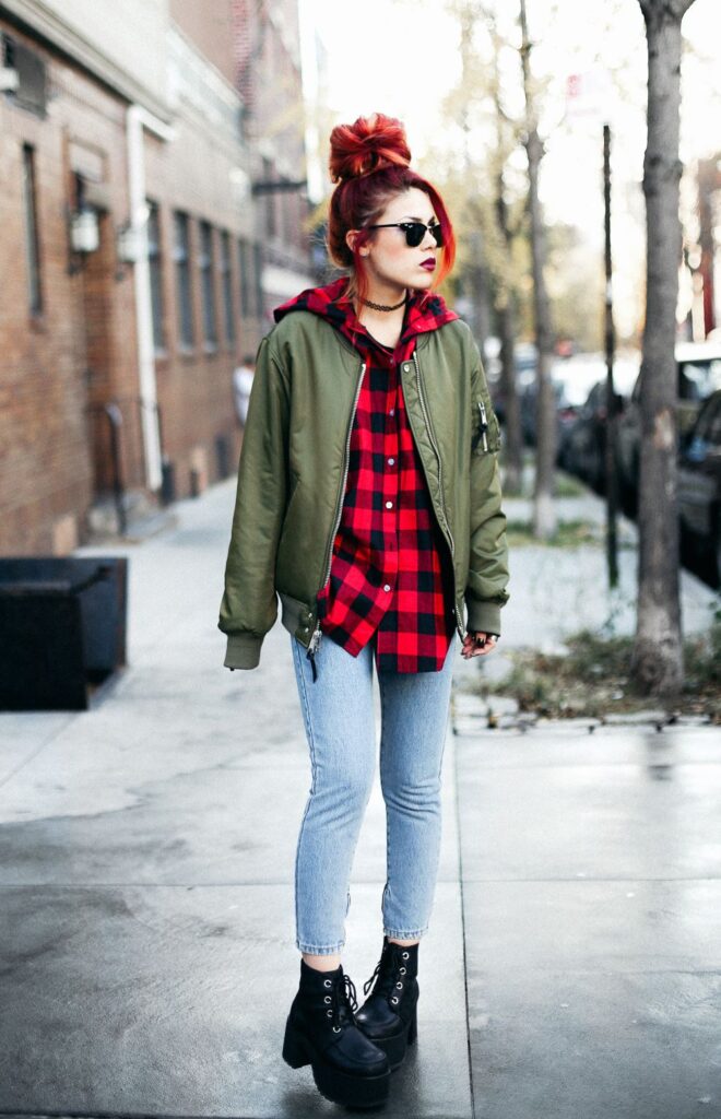 Trend Description: Layering is a key aspect of grunge fashion. Mix different textures and patterns, such as flannel, denim, and leather, to create a dynamic and visually interesting look.