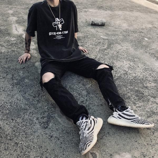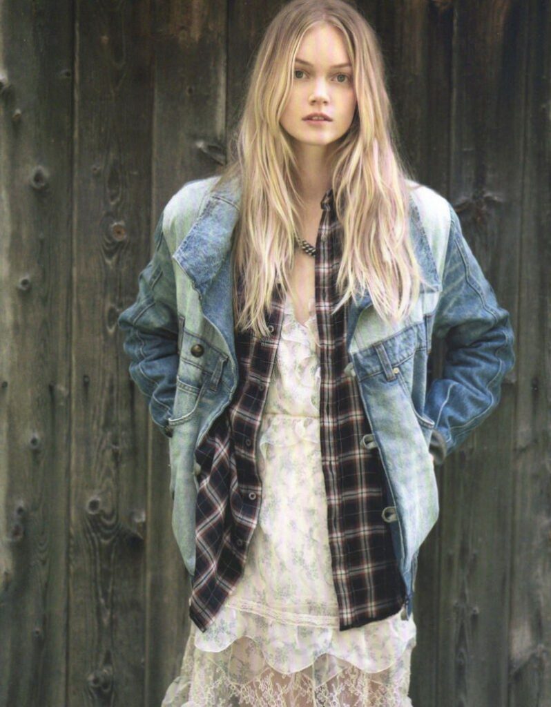 Trend Description: Distressed denim is a cornerstone of grunge fashion. Whether it’s ripped jeans, cut-off shorts, or a worn-out denim jacket, the more distressed, the better.